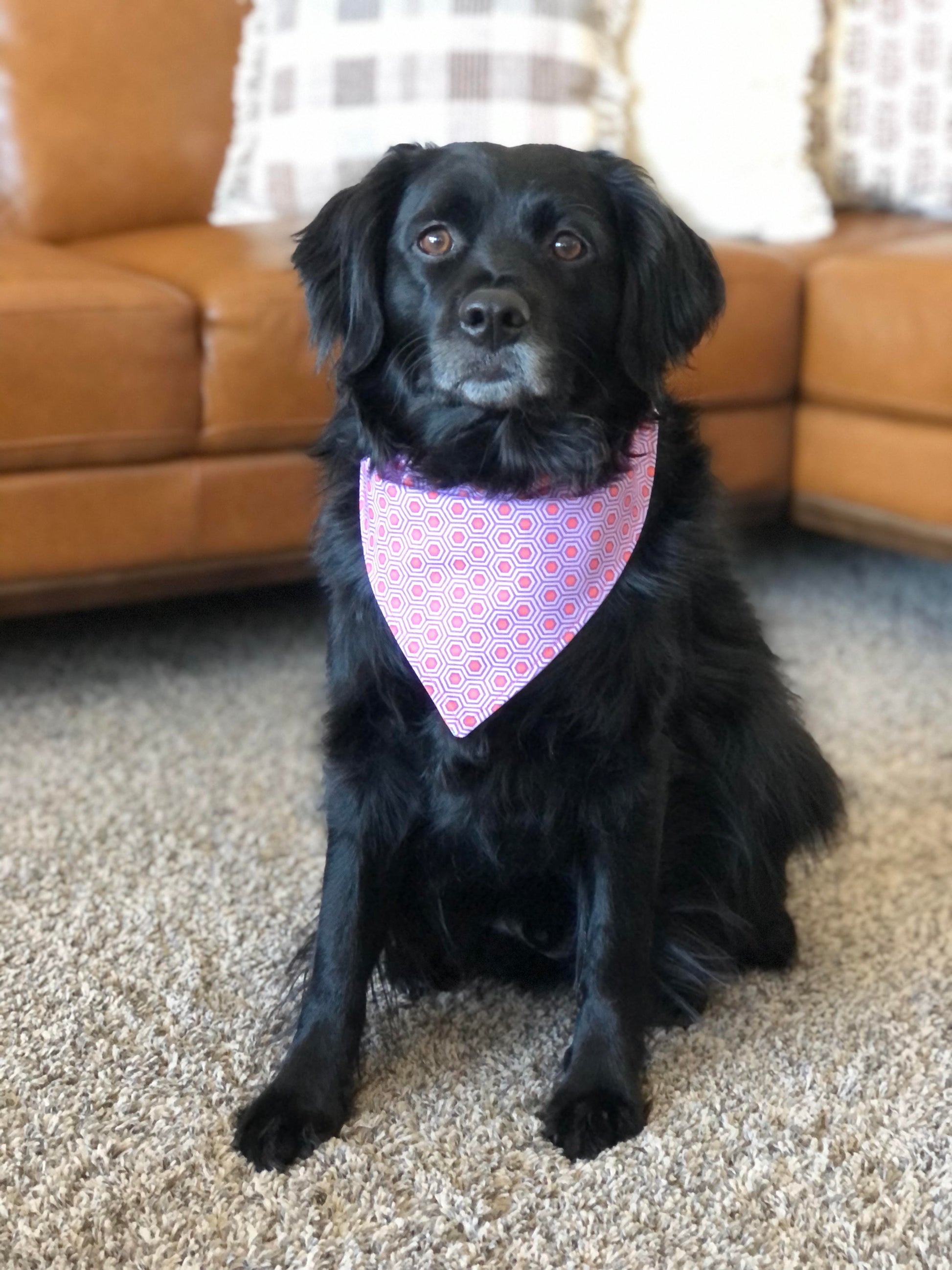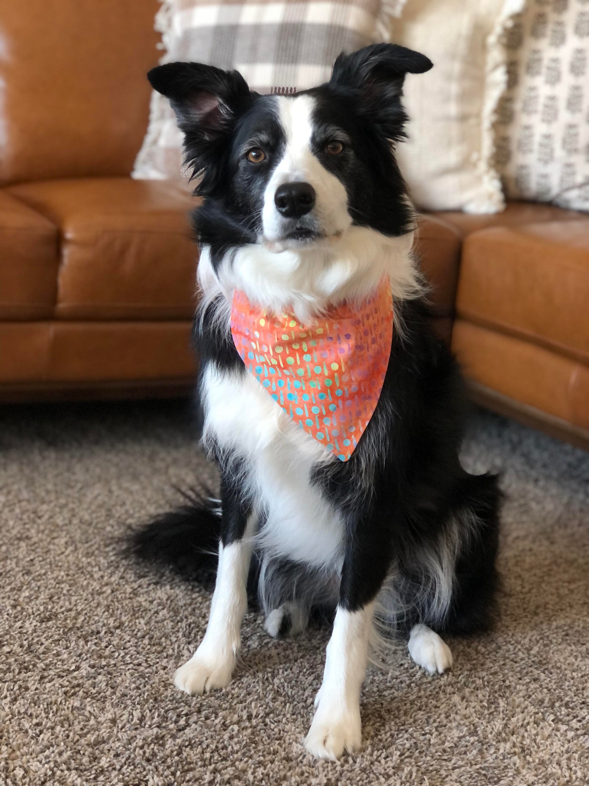 A perfect bandana for your furry friend! The bandanas come in different sizes that fit a range of dogs and their collars. Our handmade bandanas are reversible, fit onto collars, and machine washable.