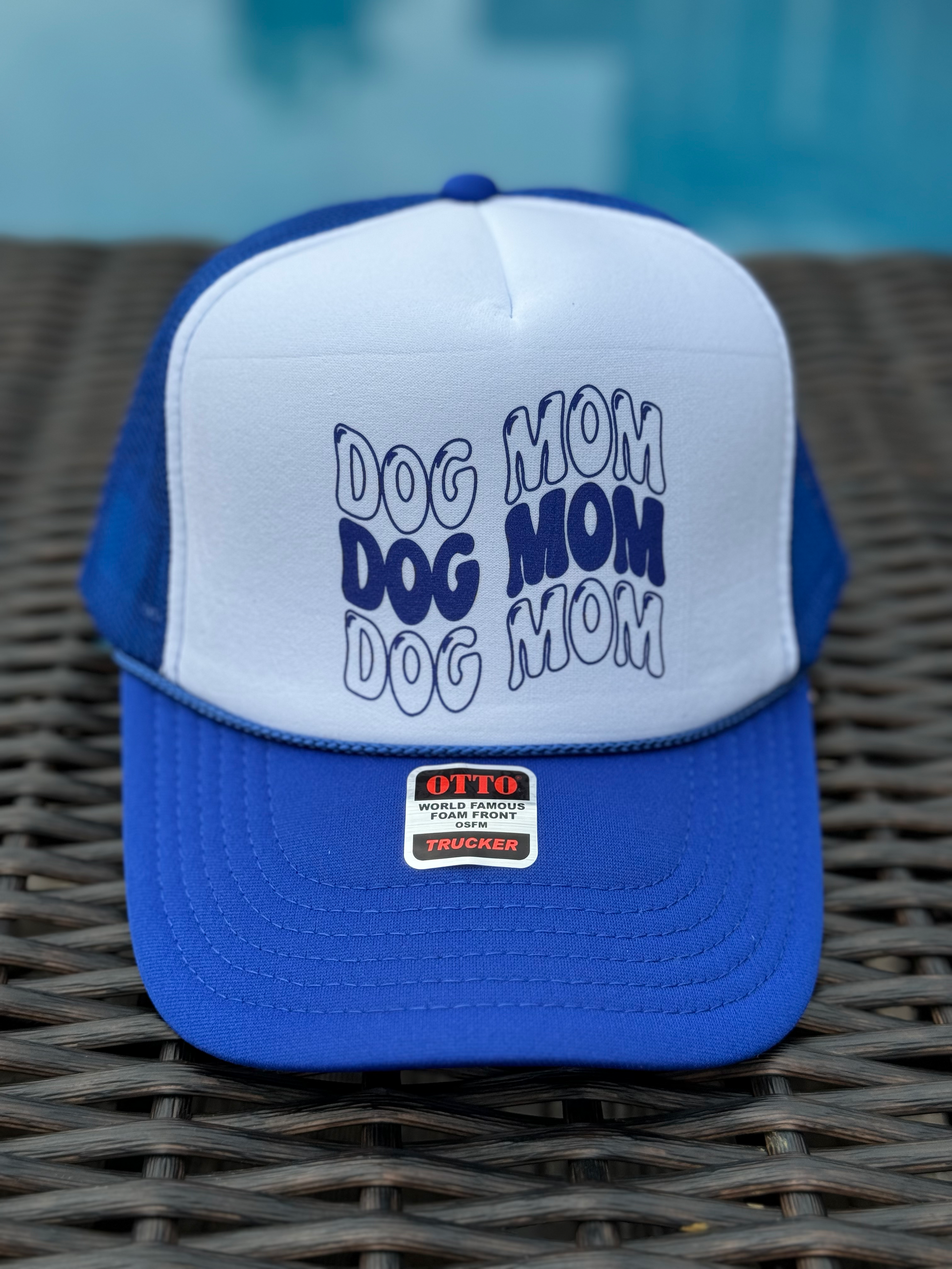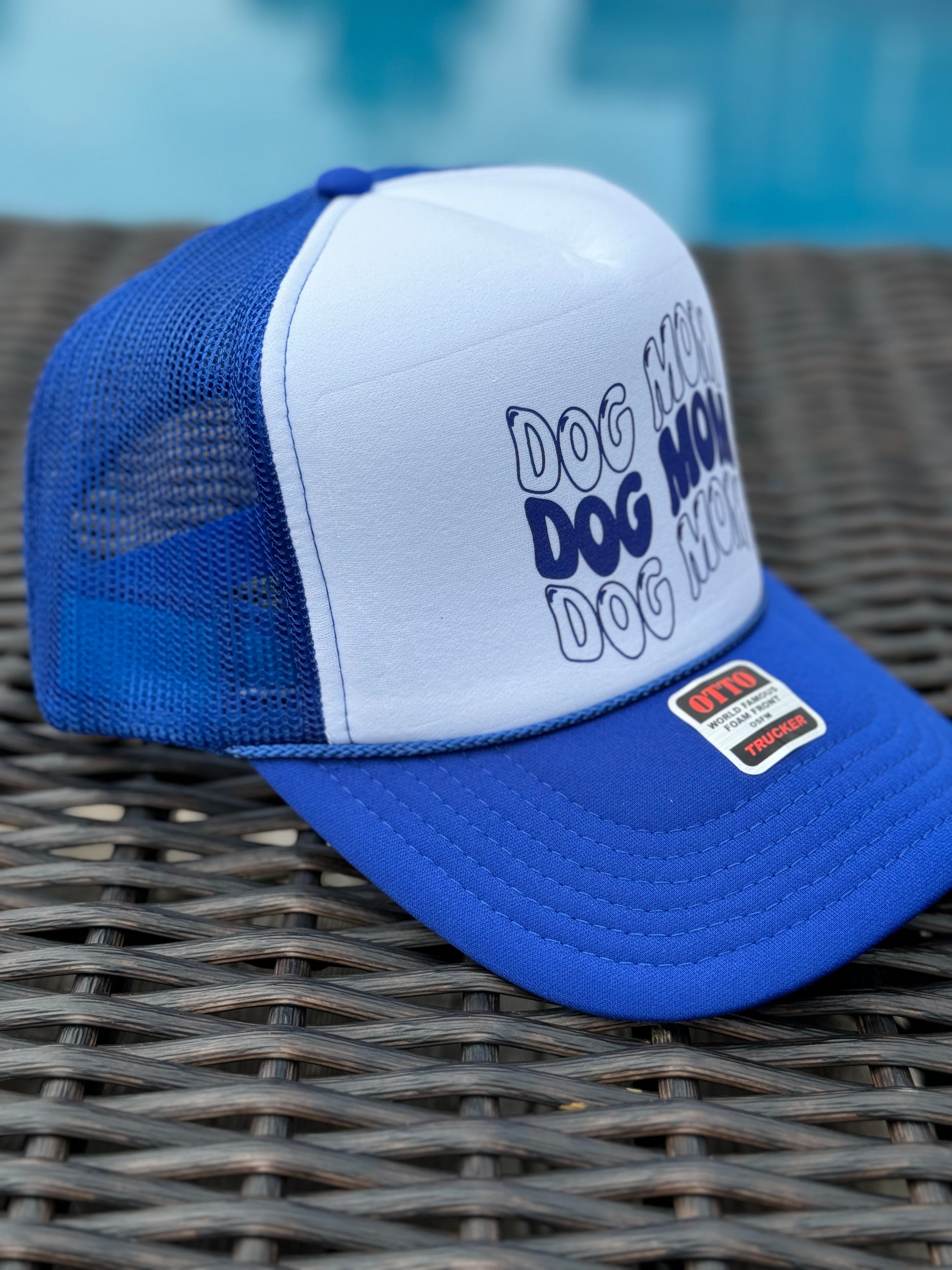 Dog Mom Blue and White Trucker Hat