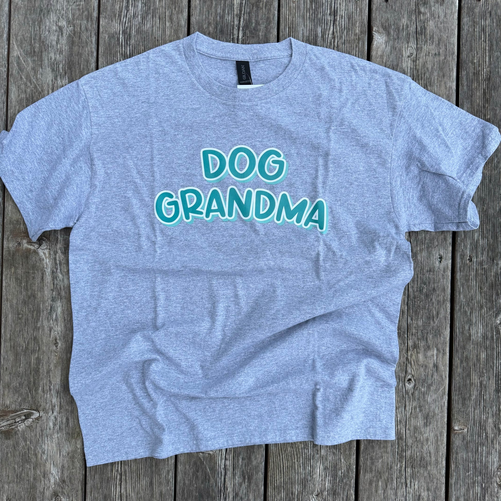 A fun new design, great for any dog grandma you might have in your life! Turquoise and white bubbly letters pop on the sports grey shirt.