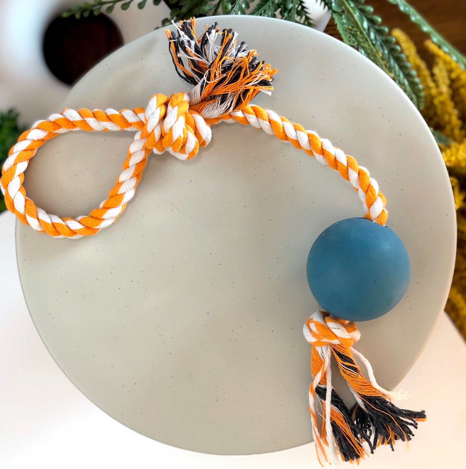 The Rope Ball Tug is perfect to provide a different tug experience with the dense rubber ball. With a good loop for you to get a grip and a hard rubber ball for your dog this toy will provide a tough challenge for both you and your dog to win.