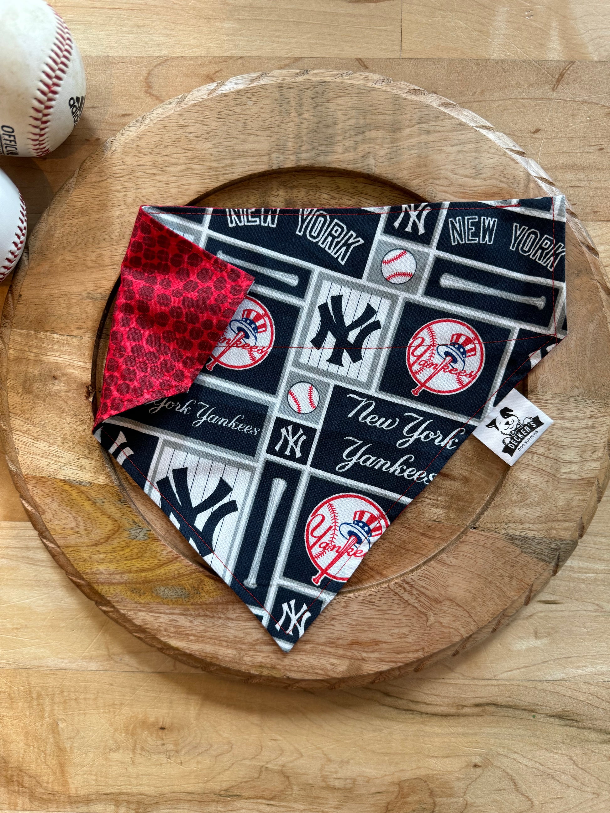 Just like all of our bandanas, these are over the collar, reversible, and hand made! Front and back are 100% cotton.