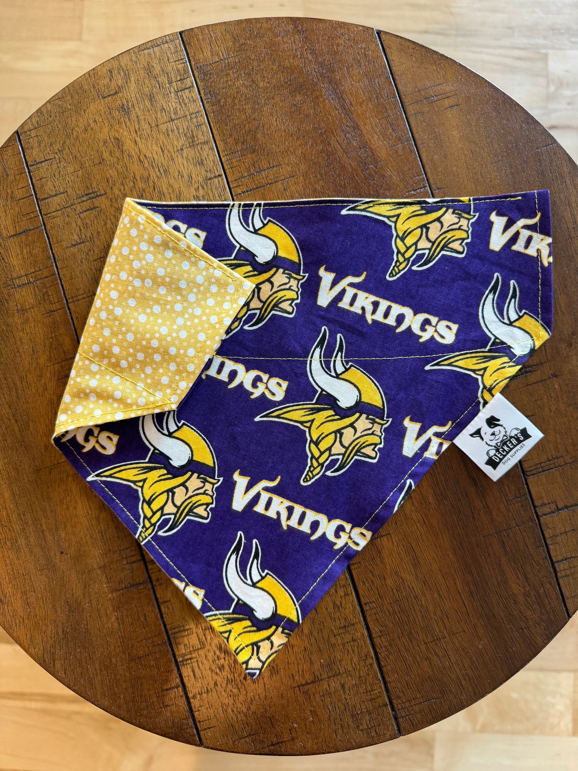 Just like all of our bandanas, these are over the collar, reversible, and hand made! Front and back are 100% cotton.